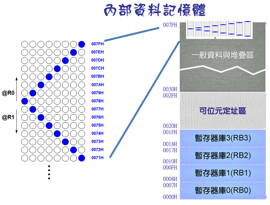 MOV P1,@R0 ;從Port 1,2輸出 RAM 的內容