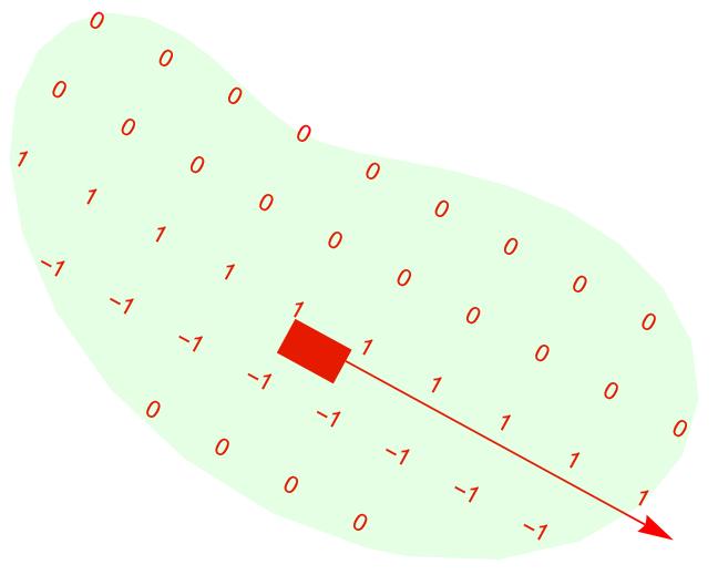 如果橡皮擦從綠色邊界劃過去,依照旋度定義是沒有跟外面的抵消.得到一個區域旋度值 -6
