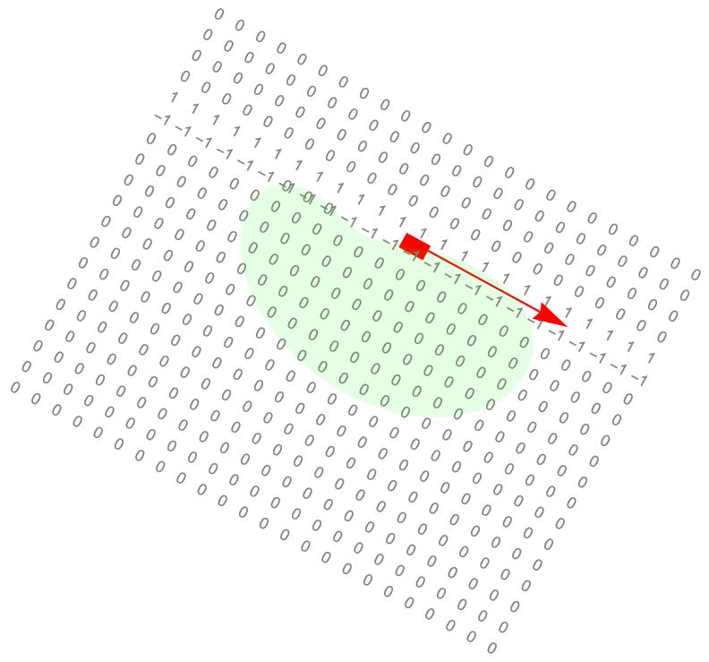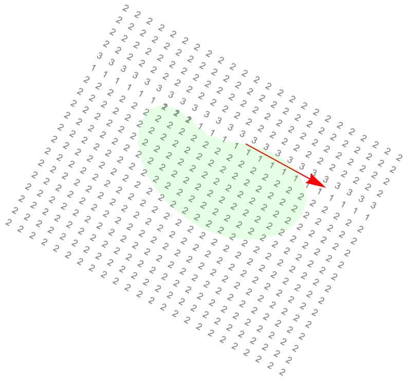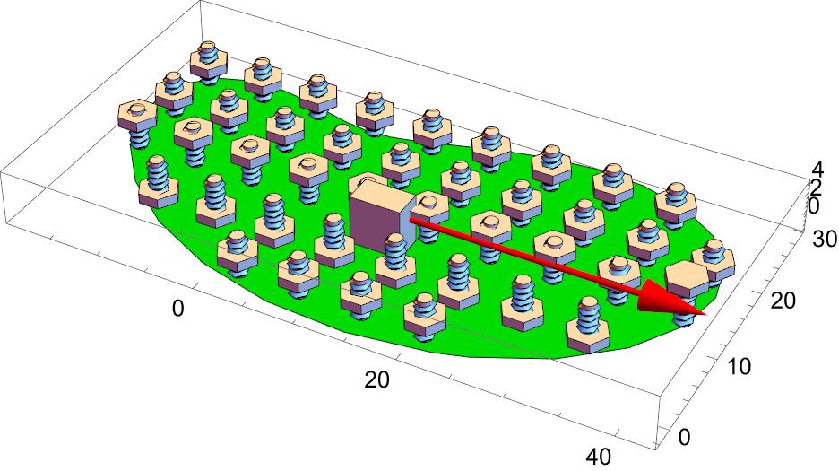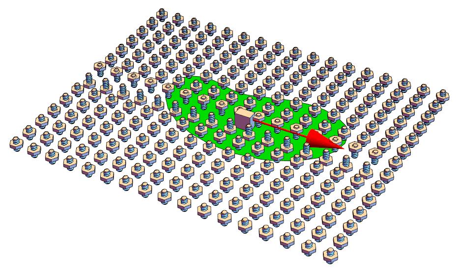再多看幾張圖,橡皮擦刷過有一個螺絲帽陣列,螺帽位置有高也有低,當我隨便圈個綠色區域的加總,是多少?答案是2,因為內部抵銷,剩邊邊的值可以加.